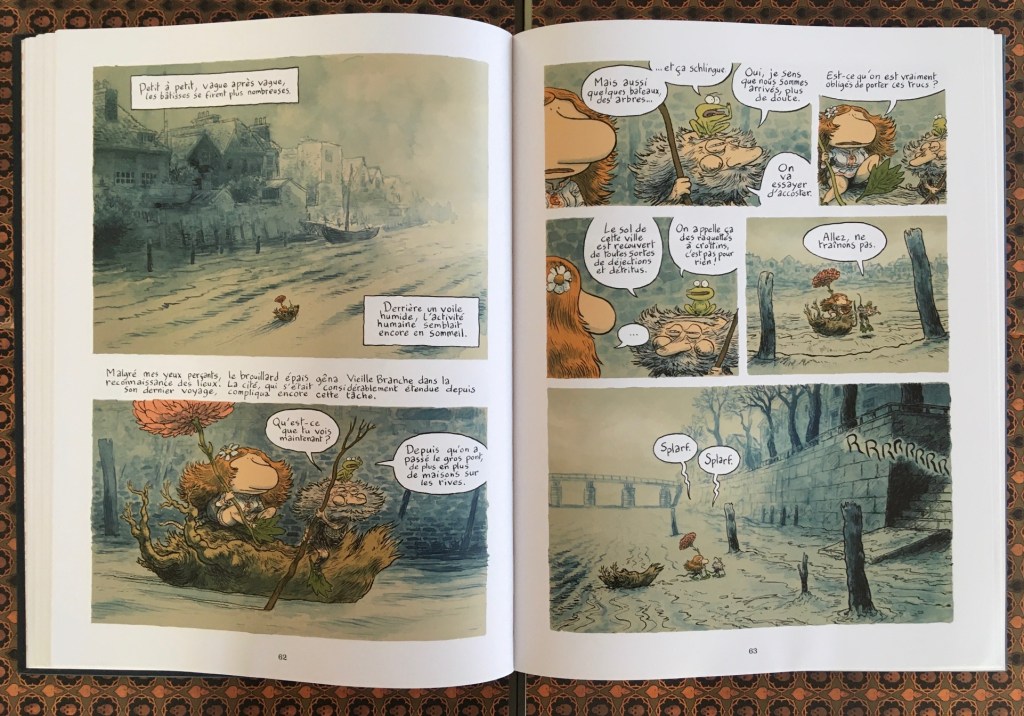 Les graphismes mêlent avec bonheur des clins d’œil aux gravures et peintures de l’époque à un trait malicieux qui tire parfois sur le grotesque – ils peuvent faire penser à ceux de Claude Ponti (les arbres), de Gustave Doré (le décor) ou encore de Pef (le nez des Mille-feuilles !). Tenir cette qualité et un tel souci du détail sur 200 pages, cela force l’admiration.