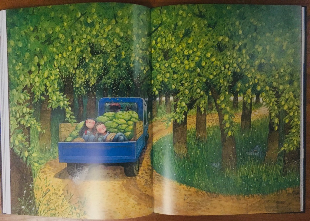 Chaque double-page est en elle-même toute une histoire, un tableau qui laisse une impression durable sur la rétine. Au fil des relectures se révèlent des détails intrigants, des clins d’œil à des toiles célèbres, des symboles que chacun interprétera peut-être différemment, mais qui parleront à tout le monde. Quelle prouesse de maintenir un tel niveau de perfection et une telle subtilité dans la composition des illustrations sur 144 pages !
