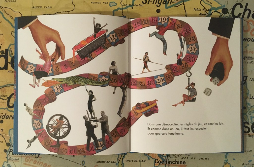Cela ne m’empêche pas de recommander chaudement cet album qui se démarque par son art de vulgariser des questions rarement abordées en littérature jeunesse. L’objet-livre est attrayant et l’enjeu de taille : mieux la génération montante connaîtra les valeurs démocratiques, mieux elle sera à même de les porter.