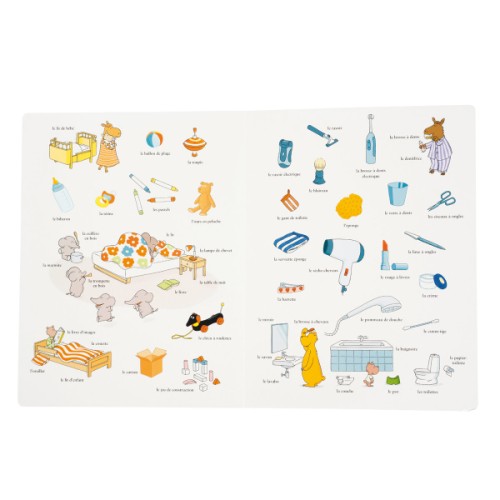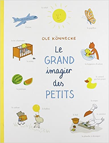 Le succès des imagiers reste donc entier et le choix est grand en la matière. Parmi cette offre, le grand imagier des petits de l’auteur allemand Ole Könnecke se démarque. Par le charme de ses graphismes, si pleins de douceur et d’humour. Par son format cartonné si généreux permettant d’offrir une somme très complète de termes qui ravira les enfants passionnés par les outils ou les instruments de musique – et ceux qui aiment les mots réjouissants comme « excavatrice ». Mais aussi et surtout par les détails et historiettes qui fourmillent grâce à de drôles de personnages animaliers et insufflent un supplément de vie.