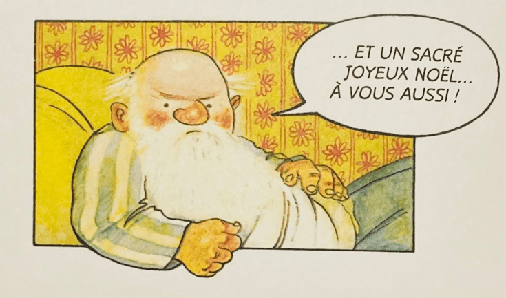 On pourrait croire que l’humeur du sacré Père Noël s’améliorerait aux beaux jours ? Et bien pas du tout. Parce que figurez-vous que dans la deuxième histoire, il s’est mis en tête de jouer les touristes dans un pays aux mœurs étranges : la France ! Pas facile de rester incognito au camping quand on ne connaît pas les coutumes locales, qu’on voyage avec des rennes et qu’on a une dégaine aussi reconnaissable… C’est donc une aventure bien dosée en humour anglais, bref, de sacrées vacances.