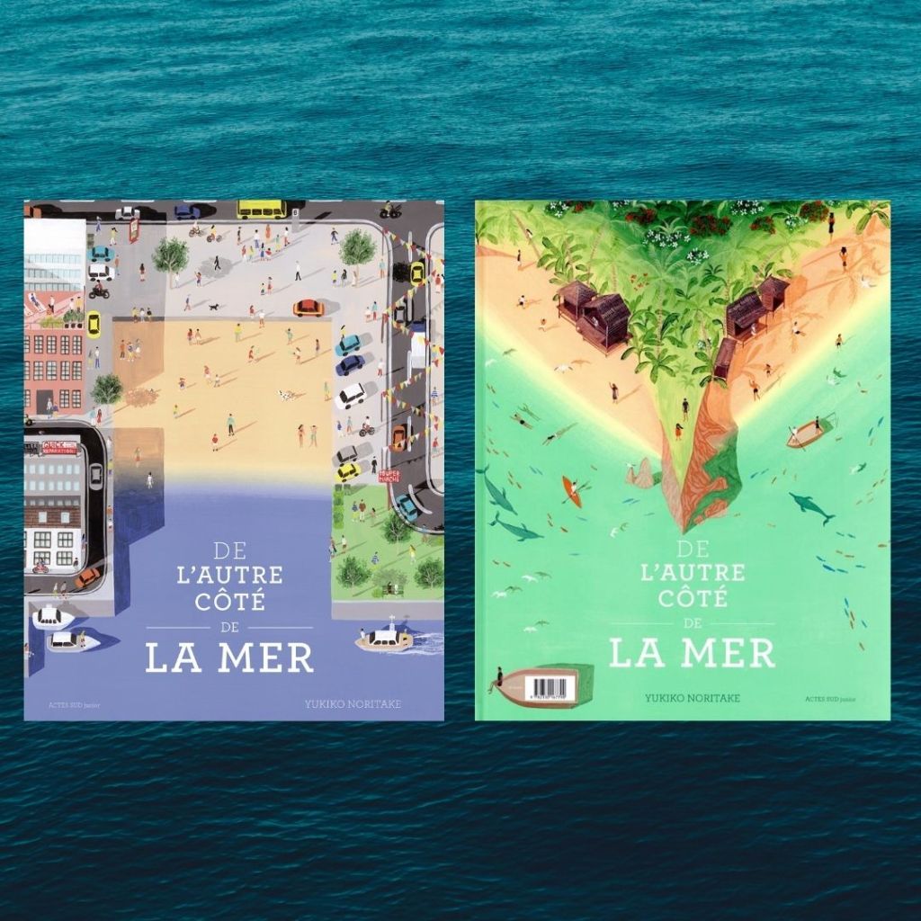 Dans la continuité de ses titres précédents, Yukiko Noritake déploie son message écologique en grand format et en couleurs gaies. Elle joue toujours sur les parallélismes, mais différemment. Là où Forêt des Frères juxtaposait deux scénarios alternatifs, De l’autre côté de la mer met en regard les perspectives avec un album qui se lit dans les deux sens : recto, la promenade de Léo, verso… et bien vous verrez.