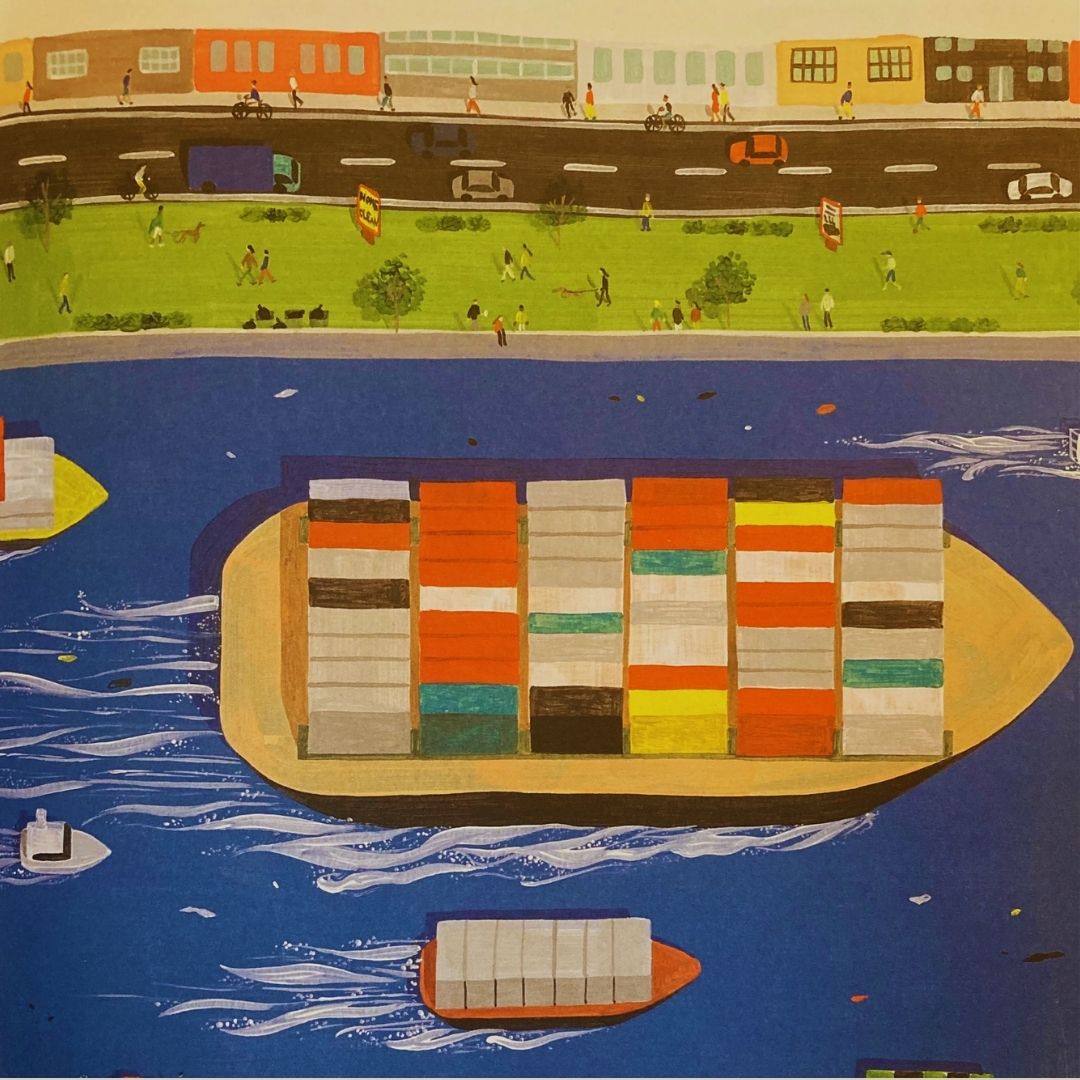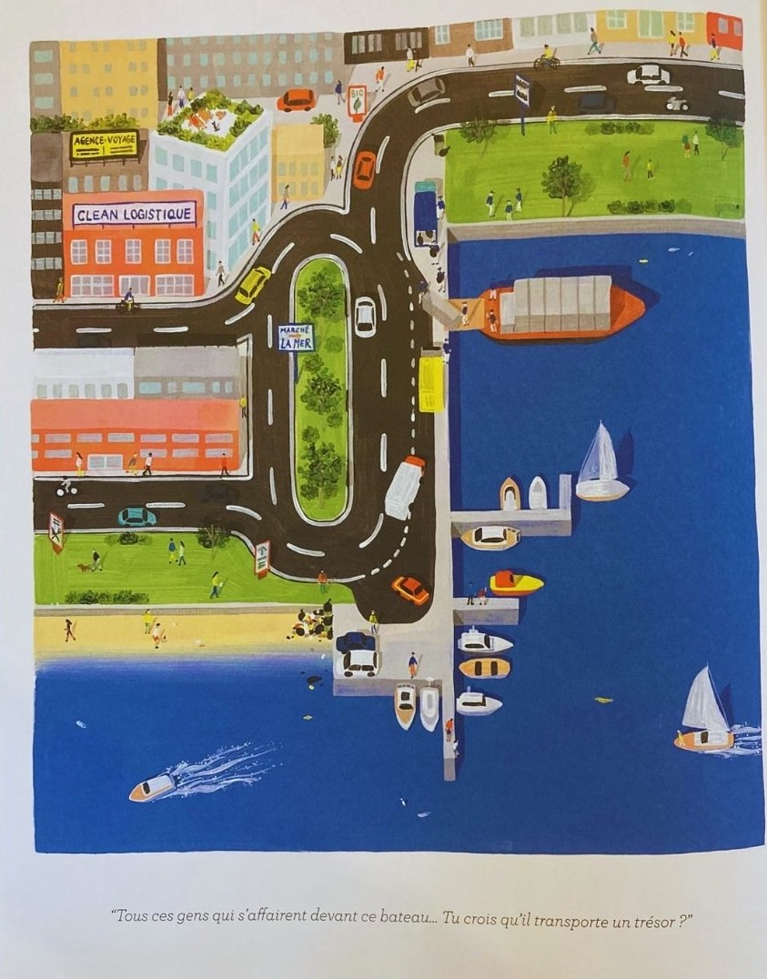 Dans une ville portuaire, Léo et son père aiment regarder les bateaux qui ont l’air de faire la course. Mais pour aller où ? Grâce à cet album, on va pouvoir suivre ces cargos et découvrir ce qui se passe là-bas, de l’autre côté de la mer…