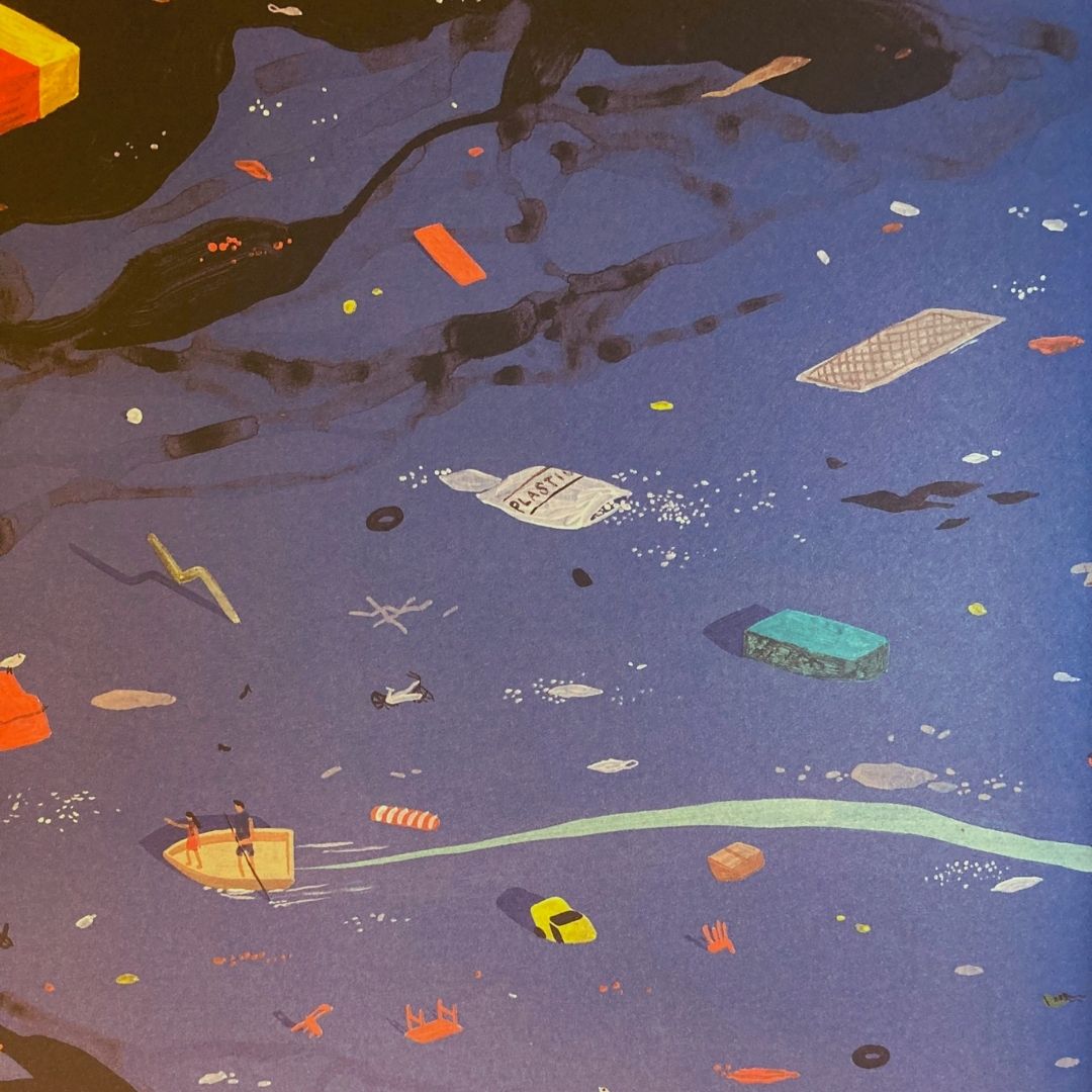 Cet art du parallélisme permet à l’autrice de tendre subtilement une perche à nos consciences. On comprend que si les ambiances peuvent être différentes de part et d’autre de l’océan, nous sommes bien dans le même bateau (si je puis dire). Les marées noires ou le continent de pastique qui ne cesse d’enfler dans le Pacifique ne sont pas des phénomènes lointains qui ne nous concerneraient pas. Ils ont immédiatement à voir avec l’incessant ballet des marchandises indispensables aux modes de vie consuméristes auxquels nous nous sommes habitués. Ainsi, les eaux qui semblaient à première vue nous séparer nous unissent en réalité plutôt, autour d’un même destin – celui de notre planète. Et de nos mouflets qui, d’un côté comme de l’autre, posent les mêmes questions…