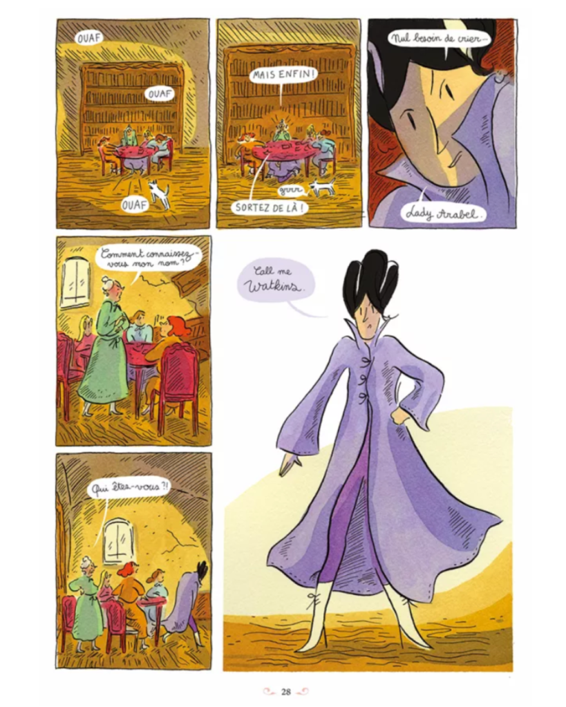Fascinée par cette autrice et son œuvre, Nina Six leur dédie ce roman graphique haut en couleur où s’entremêlent la vie de Stella au cours de l’année-charnière qu’a été 1918 et le contenu de Living alone. Dans une Londres bombardée par les Allemands, la jeune femme se débat à la fois avec les attentes de sa mère qui aimerait la voir se marier et avec des préoccupations matérielles prosaïques. Mais ces conditions de vie éprouvantes l’inspirent pour imaginer l’existence de Sarah Brown, une bureaucrate anglaise qui aurait pu finir ensevelie sous la paperasse si elle n’avait fait la connaissance de Watkins, personnage fantasque nimbé d’une aura un peu magique… Ces pages nous font glisser de la vie de Stella à celle de Sarah, montrant la manière dont l’une puise dans son quotidien pour imaginer l’autre. La matière semblait donc réjouissante, servie par une ligne légère et virevoltante.